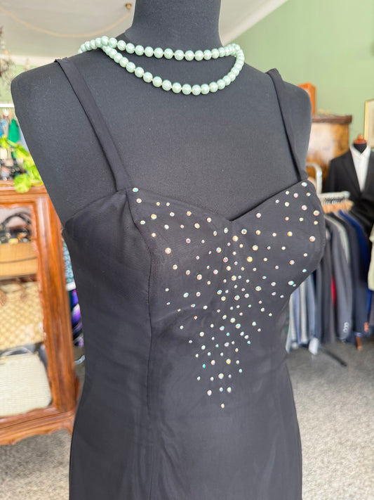 Abito anni ’50 in pura seta con ricamo floreale e decoro di perline - TG. 38