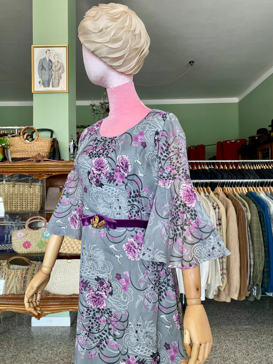 Maxi dress anni ‘70 lilla e grigio perla - TG. 44