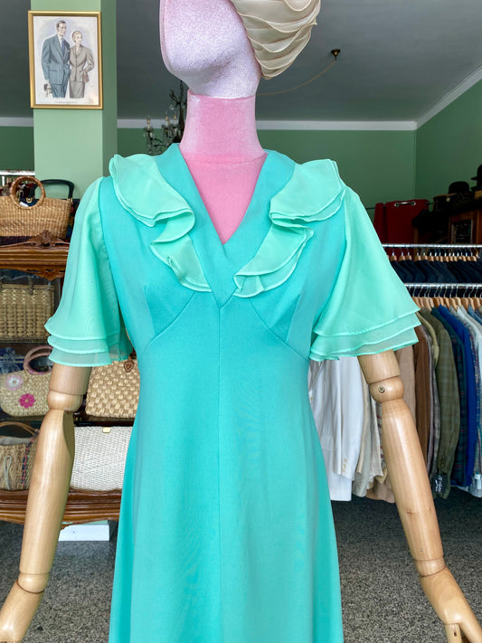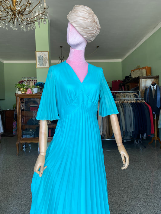 Maxi dress plissettato anni ‘70 turchese - TG. 40
