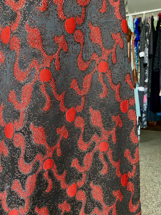 Maxi dress anni ‘70 in broccato rosso e nero - TG. 38