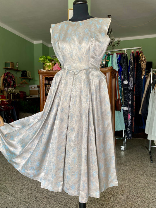 Abito originale anni ’50 in broccato lamé a motivo piumato - TG. 38