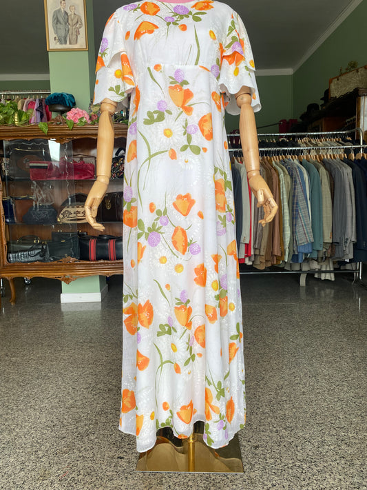 Fiori d’arancio – Maxi dress anni '70 dal sapore rinascimentale - TG. 42 circa