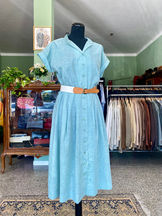 Abito anni ‘70 in lino verde menta - TG. 46