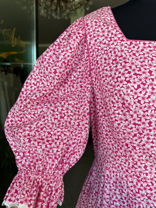 Abito tirolese rosa con micro-fiori - TG. 44/46