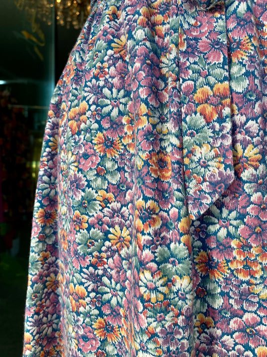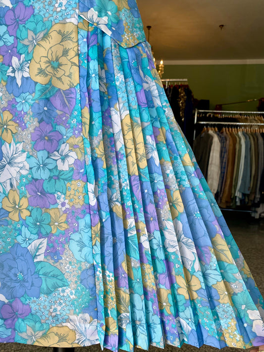 Abito vintage anni ’60 in Trevira Georgette a fiori – pieghe laterali - TG. 42 circa