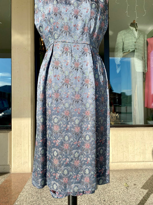 Abito anni ’60 in pura seta broccata – Motivo floreale orientale - TG. 40