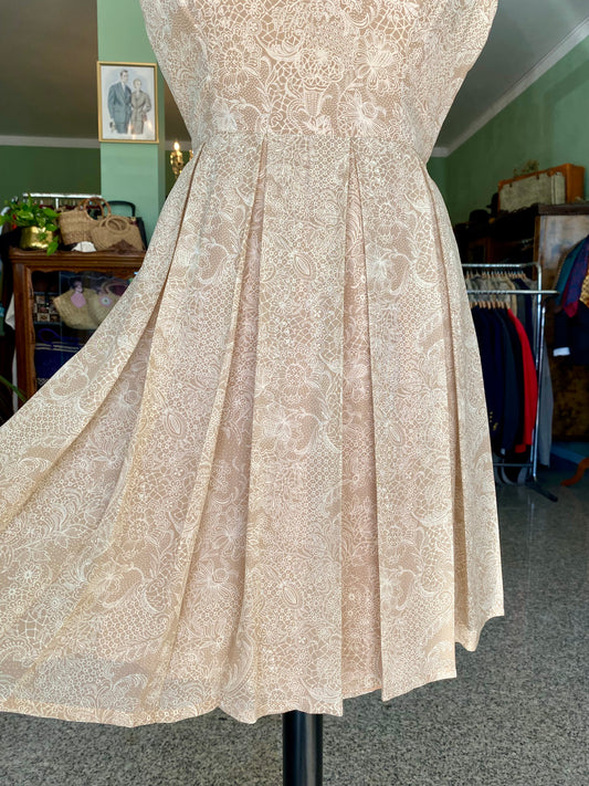 Abito anni ‘60 nocciola con stampa delicata - TG. 40
