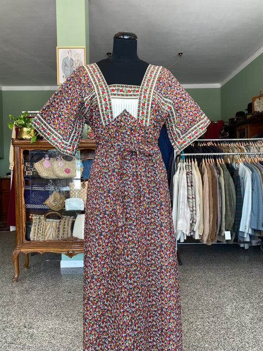 Abito lungo anni '70 in puro cotone floreale - TG. 38/40