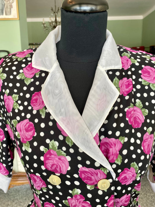 Abito anni '80 a pois e rose fucsia - TG. 40/42
