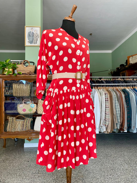 Miss Pois – Abito vintage in seta a pois bianchi - TG. 44/46