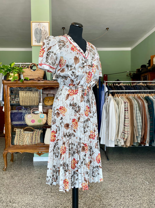 Abito plissé anni '70 con stampa floreale e fazzolettino couture - TG. 40/42