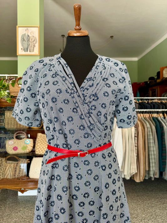 Abito anni ’70 a quadretti con margherite blu - TG. 44 circa