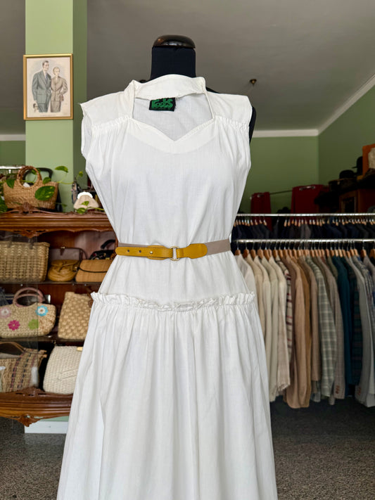 Abito bianco anni ’70 in cotone con bordo sangallo - TG. 38/40