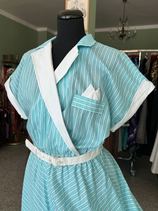 Abito anni ’80 stile rockabilly con righe bianche e turchesi - TG. 46