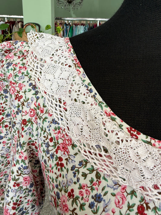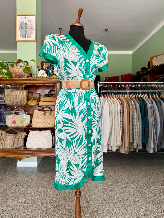 Abito anni ’80 in pura seta stampa tropicale - TG. 44 circa