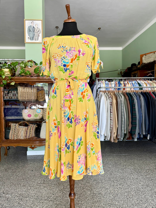 Abito anni ‘70 giallo con stampa floreale - TG. 42