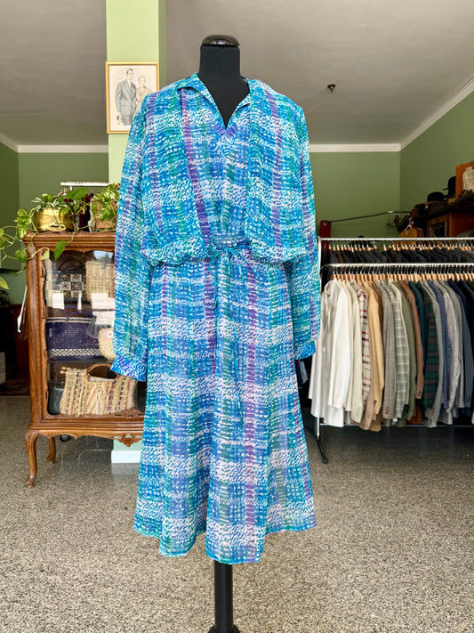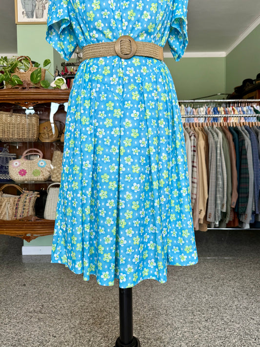 Abito anni ‘80 azzurro con fiori - TG. 52/54