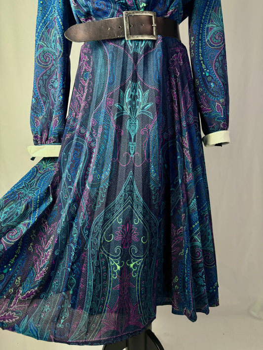 Abito anni ‘70 in paisley blu con colletto bianco - TG. 44/46