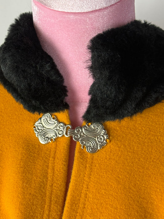 Cappa in lana senape con collo e polsini in pelliccia nera - TG. U