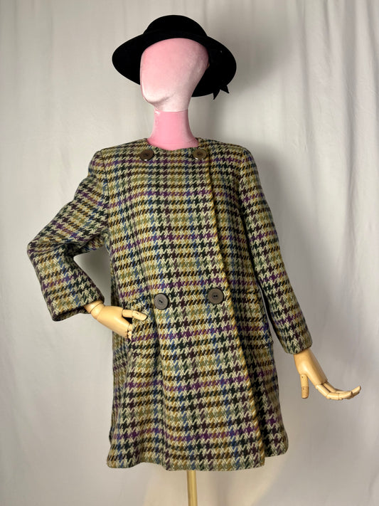 Cappotto anni ’80 in lana fantasia pied-de-poule multicolore - TG. 42/44
