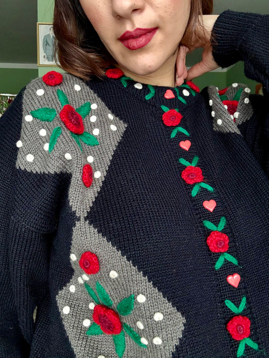 Cardigan tirolese artigianale con ricami floreali - TG. 46/48