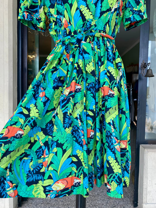 Abito anni ‘80 in cotone con pappagalli 🦜 - TG. 40/42/44 circa