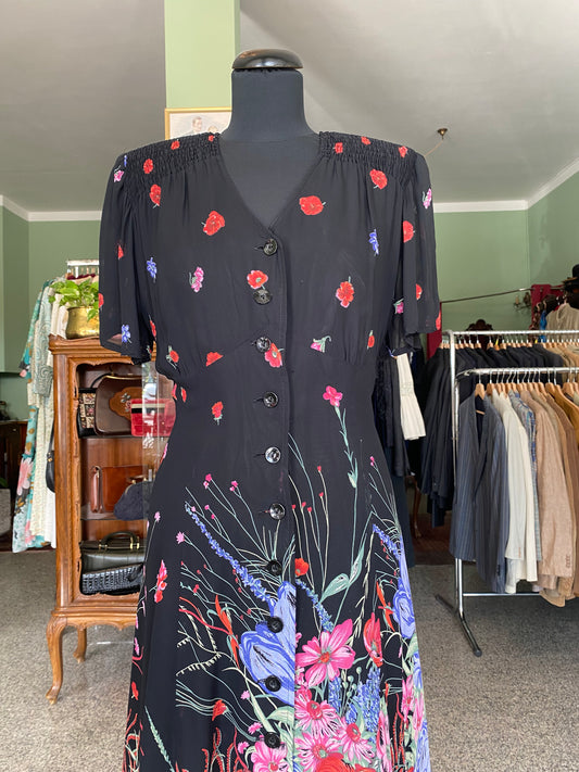 Abito anni ‘80 in georgette con stampa floreale - TG. 44 circa