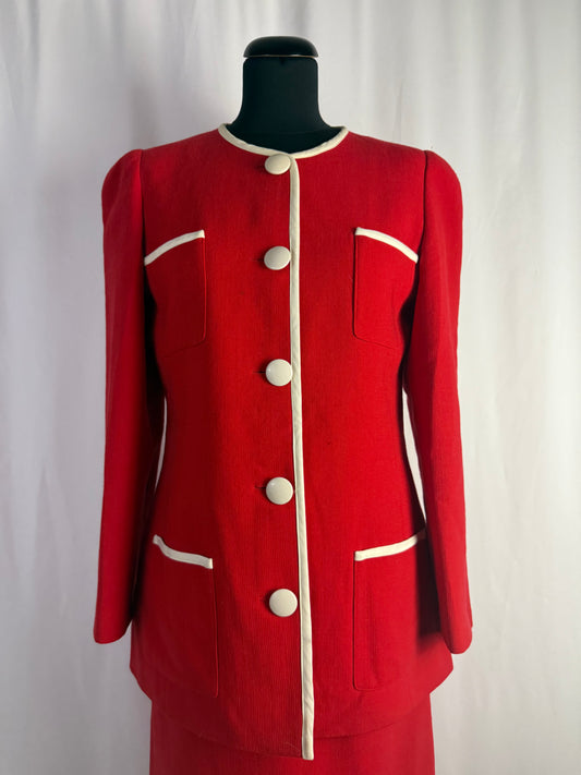 Tailleur anni ‘80 rosso con profili bianchi - TG. 40