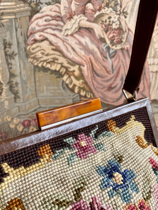 Borsa anni ‘60 ricamo mezzo punto - riquadri