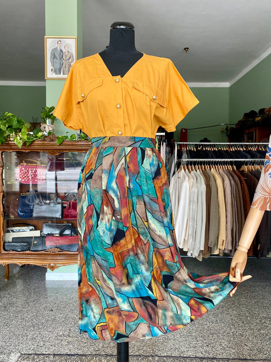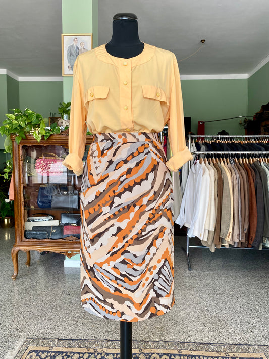 Blusa gialla in seta - Petto fino 124 cm - TG. 50/52/54