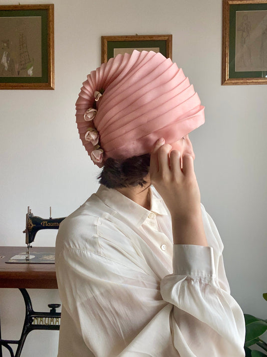 Cappello anni ‘60 in seta rosa