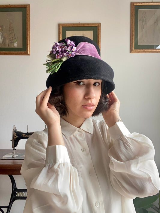 Cappello anni ‘80 con fiori di lavanda