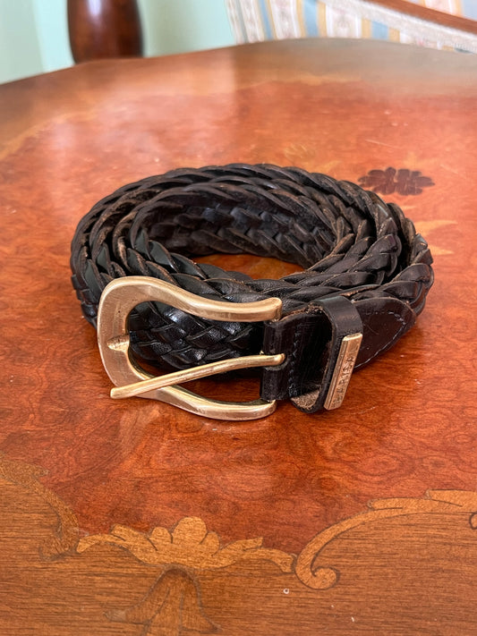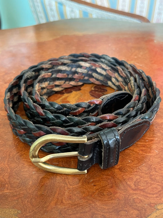 Cintura in pelle intrecciata marrone e nera