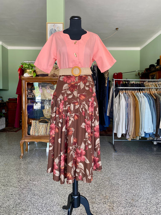 Gonna floreale anno ‘70 con bottoni decorativi - TG. 38