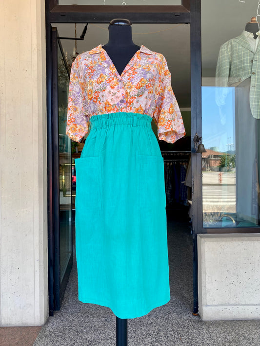 Gonna anni '80 tropical multicolor a pieghe morbide - TG. 48/50