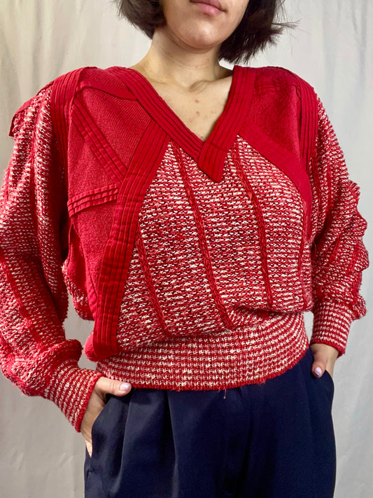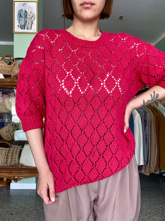 Maglia traforata vintage rosso ciliegia (anni ’80 – fatta a mano) - TG. 40/42 circa