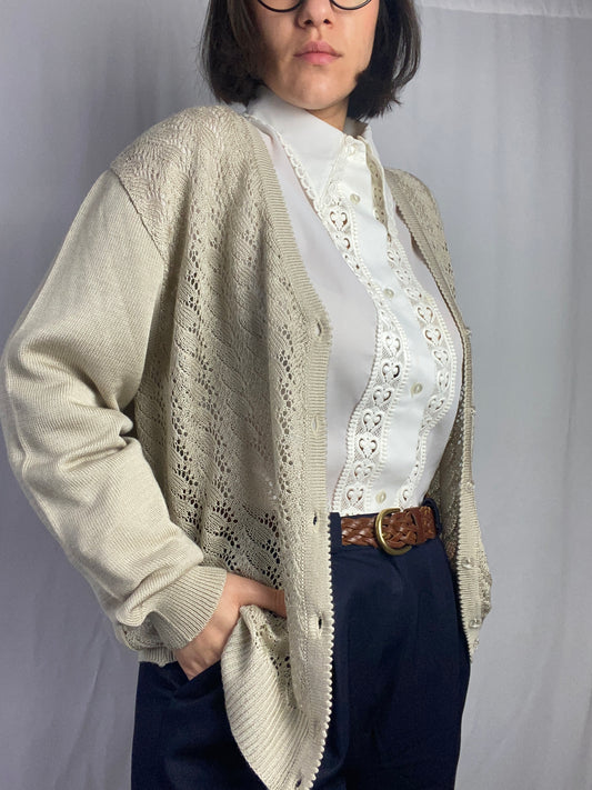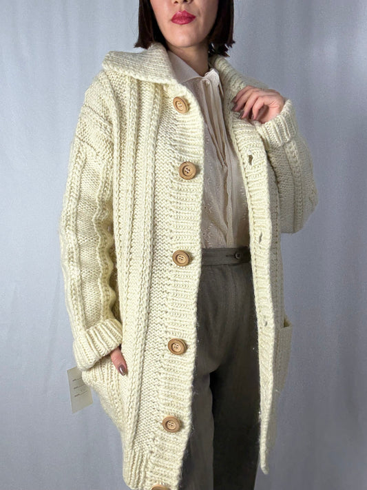 Cardigan Vintage Crema in Lana Grossa – Lavorazione a Treccia e Bottoni in Legno - TG. 44 - 48