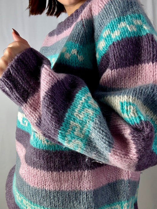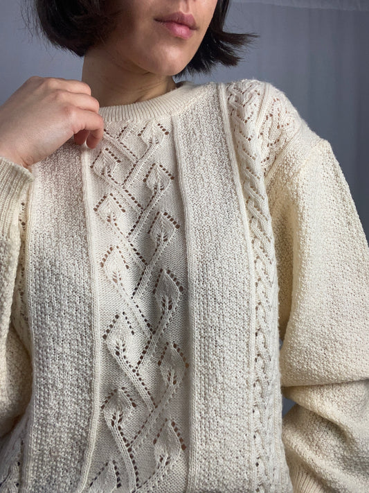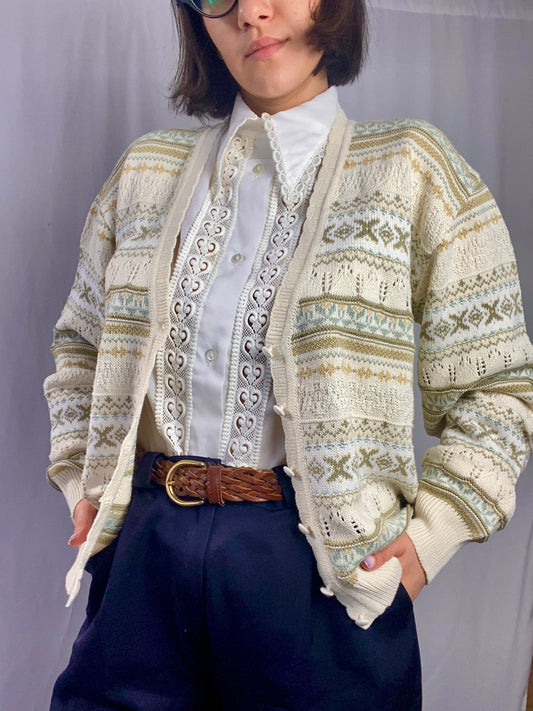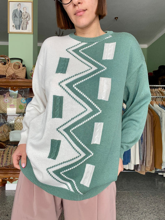 Maglia vintage anni β80/β90 con pattern geometrico verde salvia e panna - TG. 44/46 circa