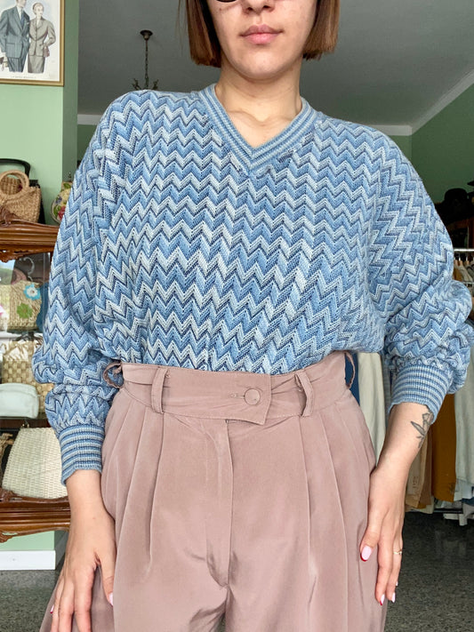 Maglione vintage GioFerrari a zig zag blu anni β90 - TG. 48/50