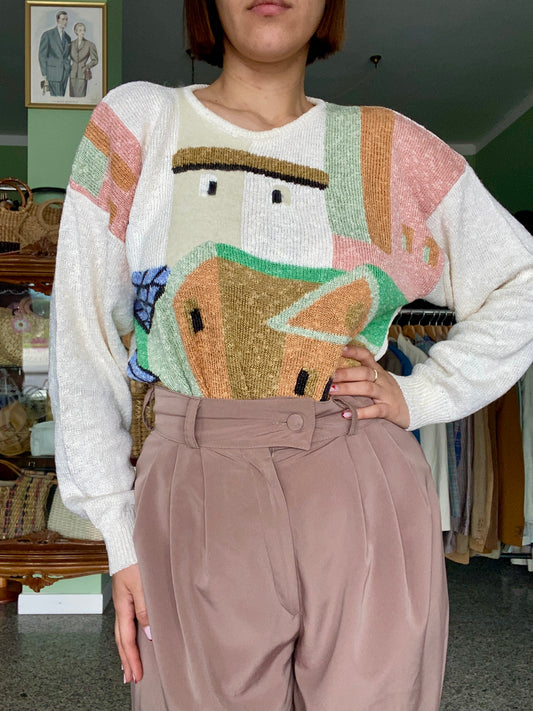 Maglia vintage anni β80/90 con motivo stilizzato di case π - TG. 42/44 circa