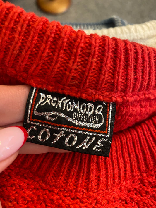 Maglia vintage rossa con ricamo floreale β anni β80 - TG. 40/42/44 circa