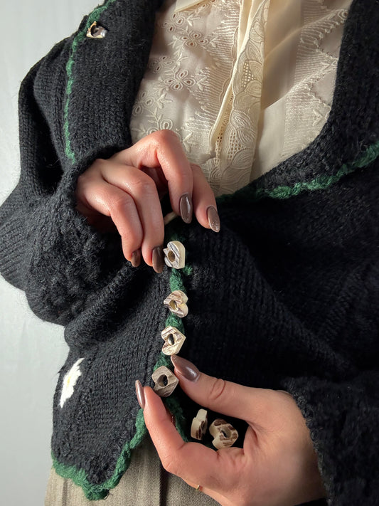 Cardigan Tirolese Vintage in Pura Lana β Ricami Edelweiss e Bottoni in Legno πͺ΅ - TG. 44/46