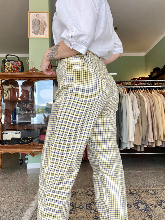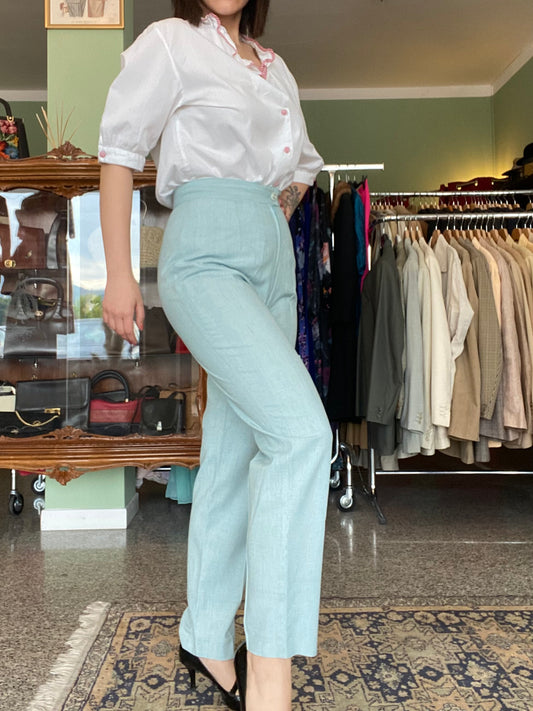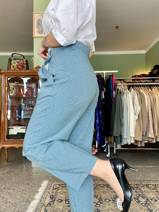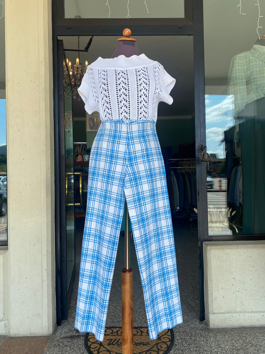 Pantaloni anni ‘70 a quadri celesti - TG. 36