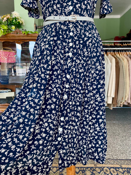 Abito blu con roselline bianche - TG. 44/46 - guardare le misure in CM