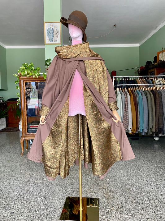 Trench Cioccolato con Sciarpa e fodera oro in Paisley - TG. 48/50/52