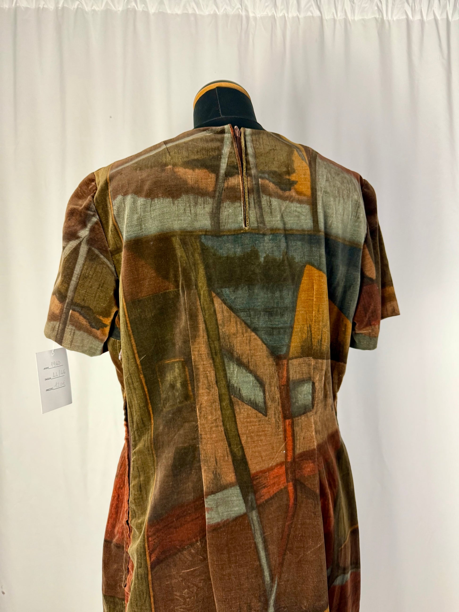 Abito anni ‘60 in velluto con fantasia geometrica - TG. 46