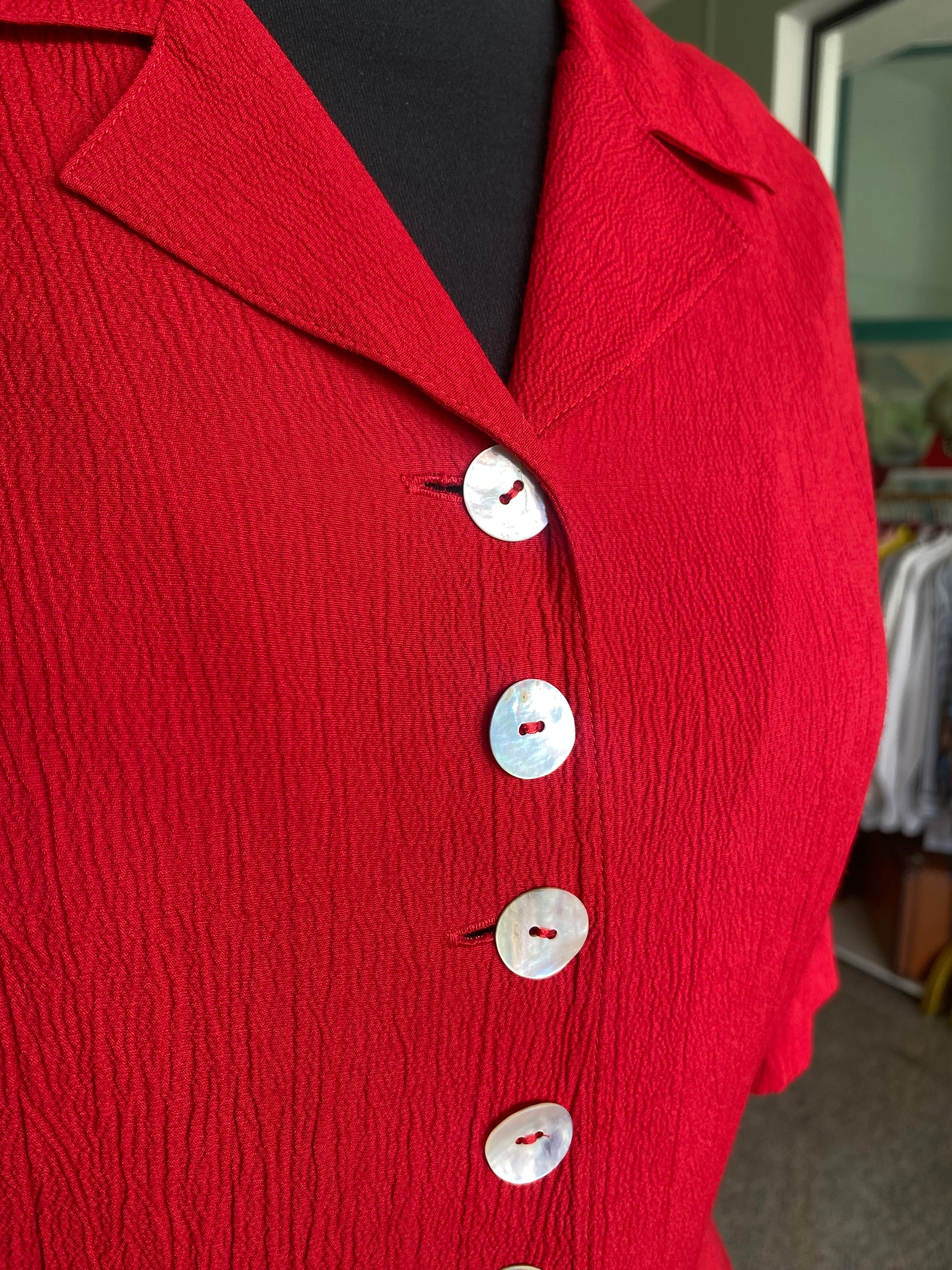 Abito anni '80 rosso con bottoni in madreperla - TG. 44/46