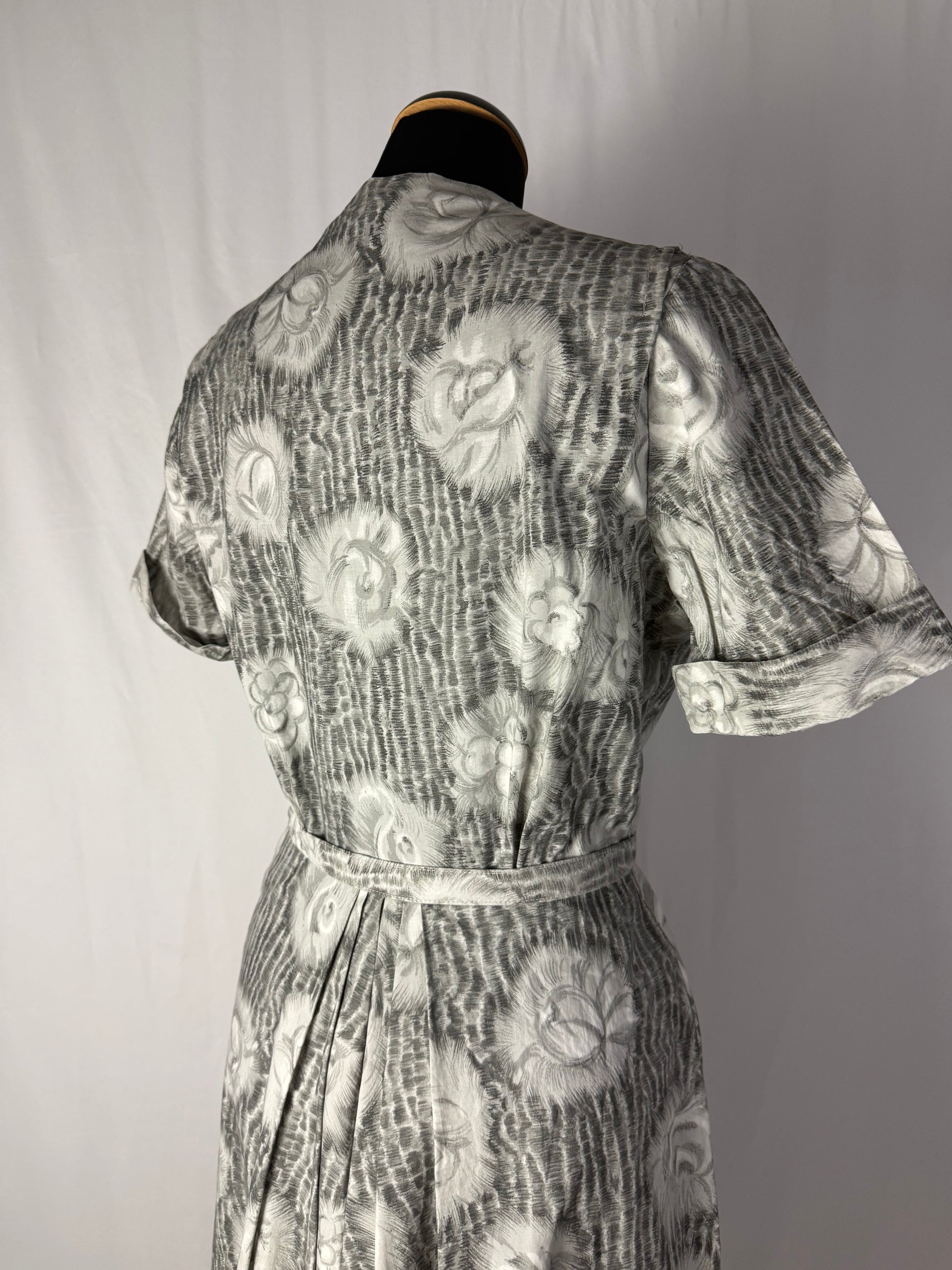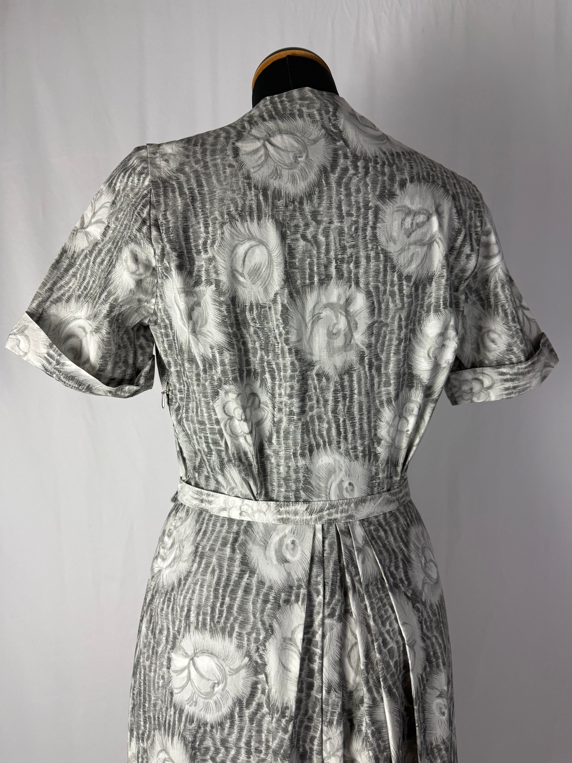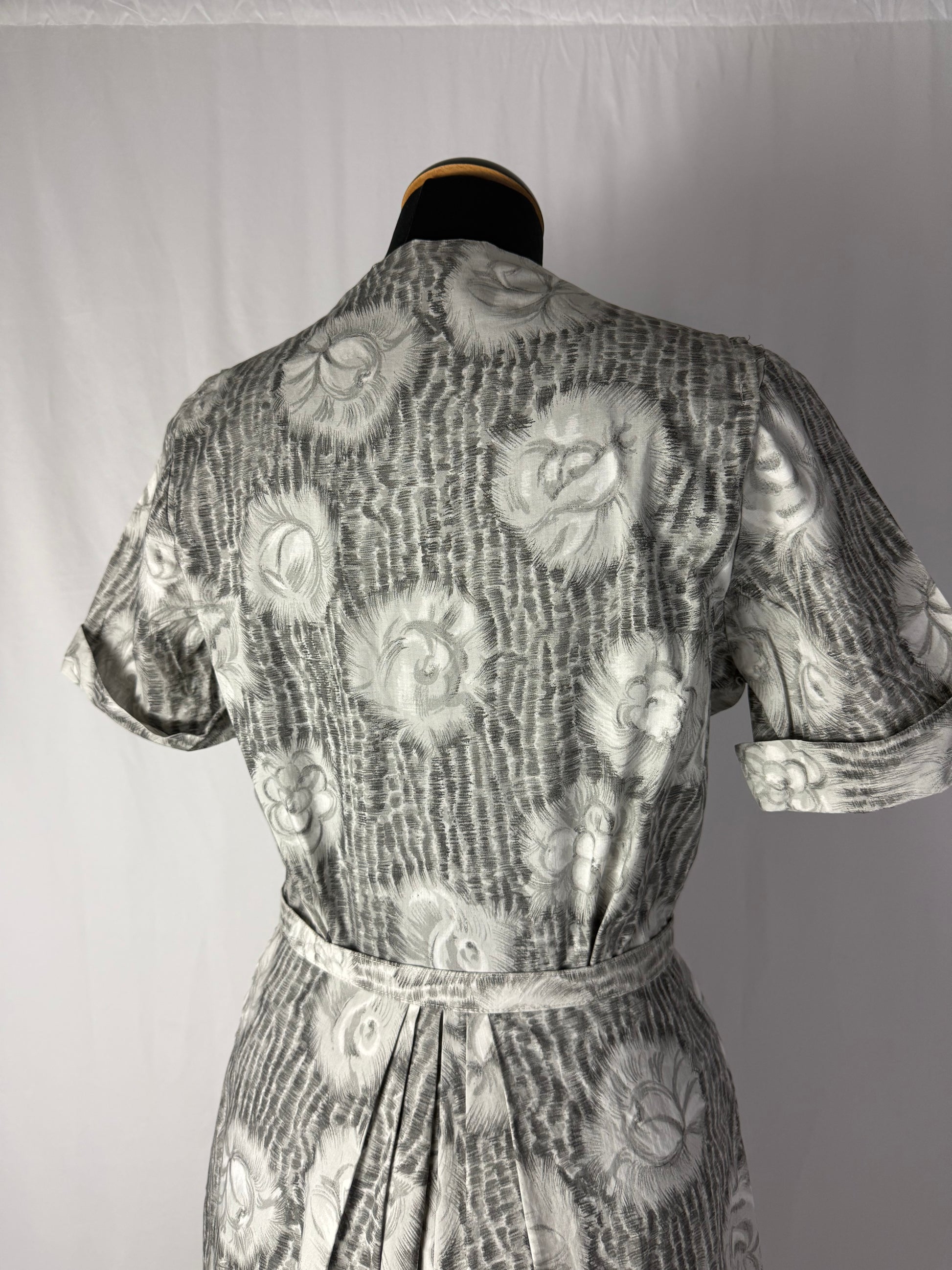 Abito anni ‘50 grigio perla con roselline - TG. 42