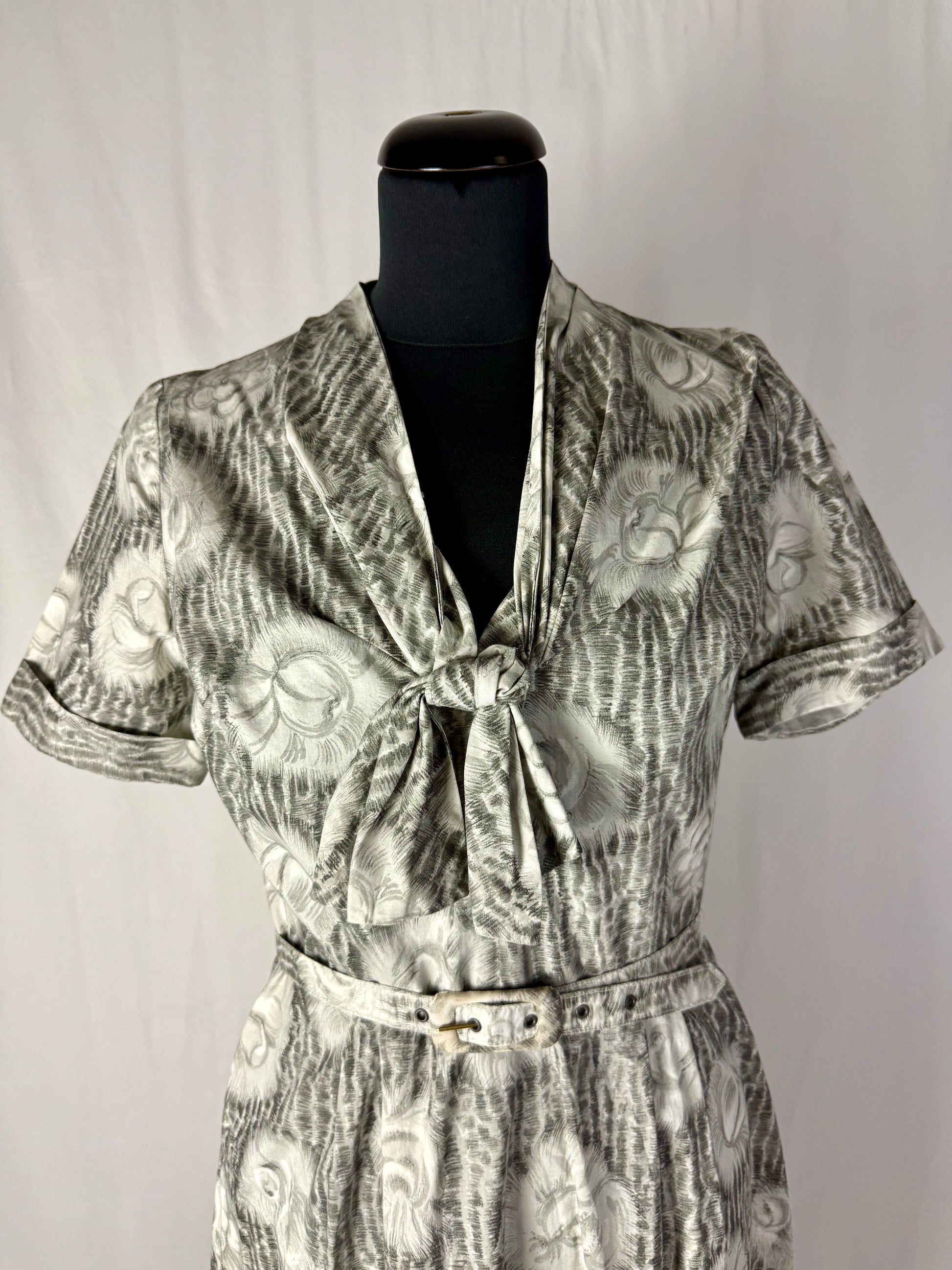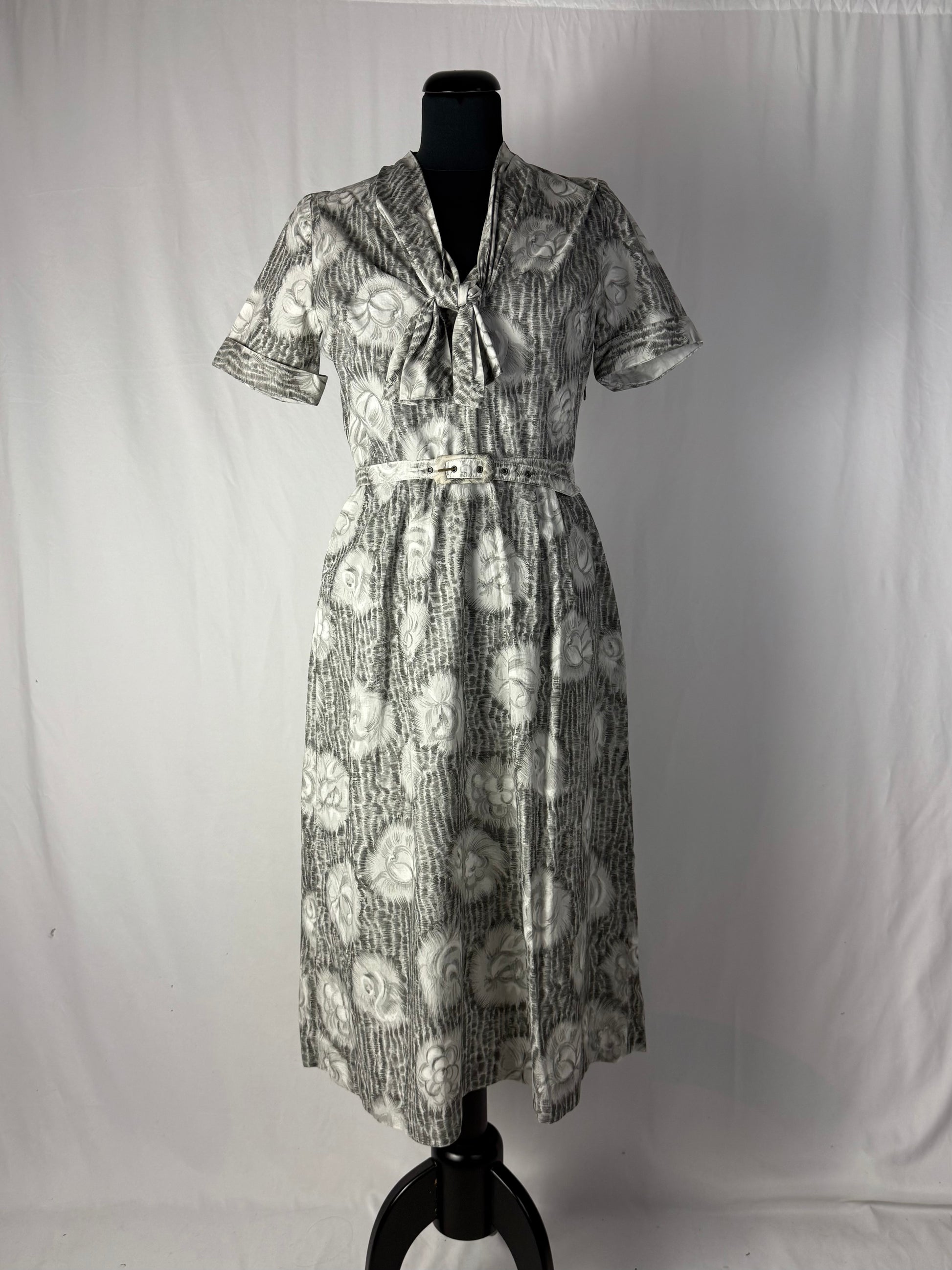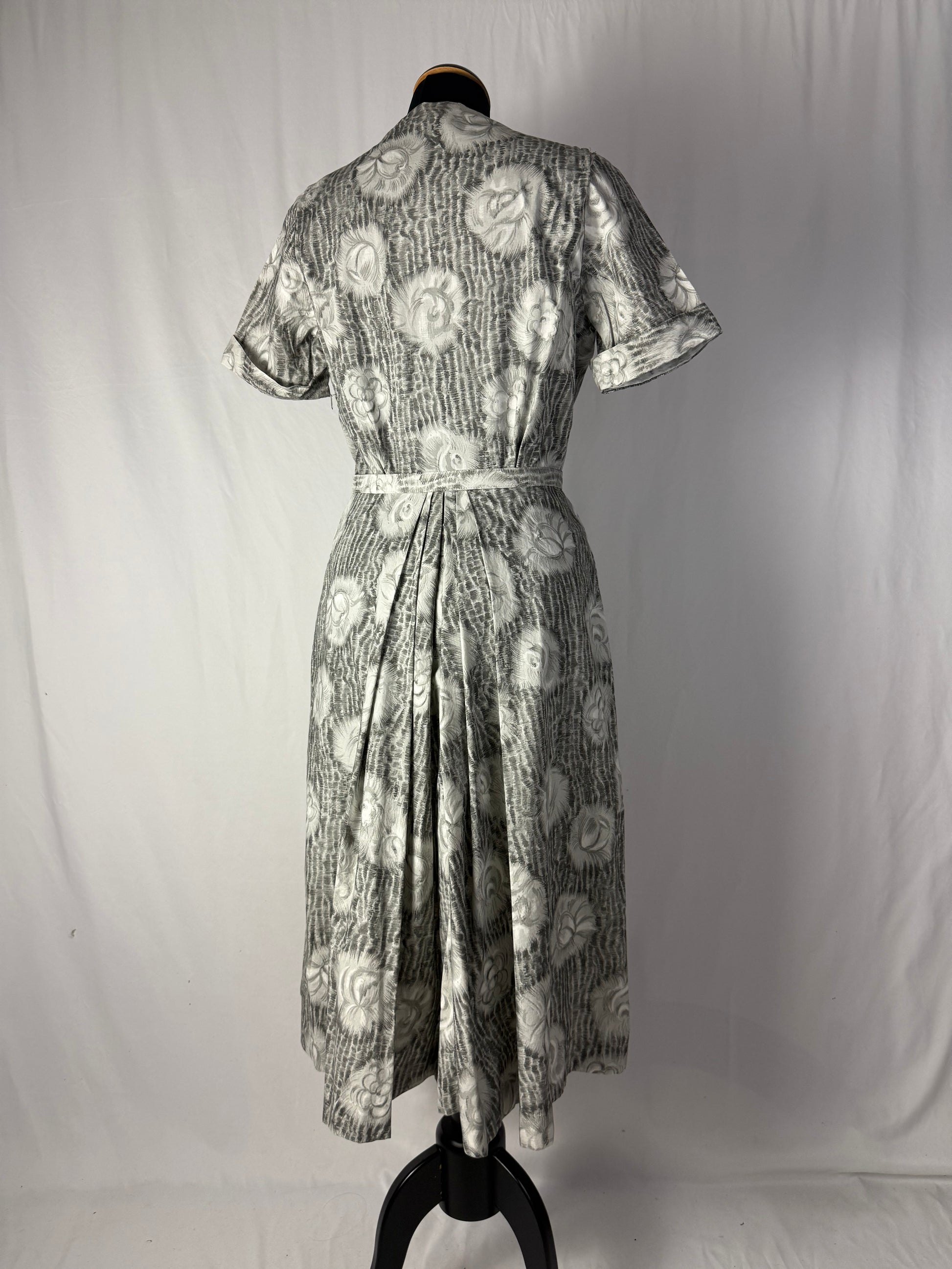 Abito anni ‘50 grigio perla con roselline - TG. 42