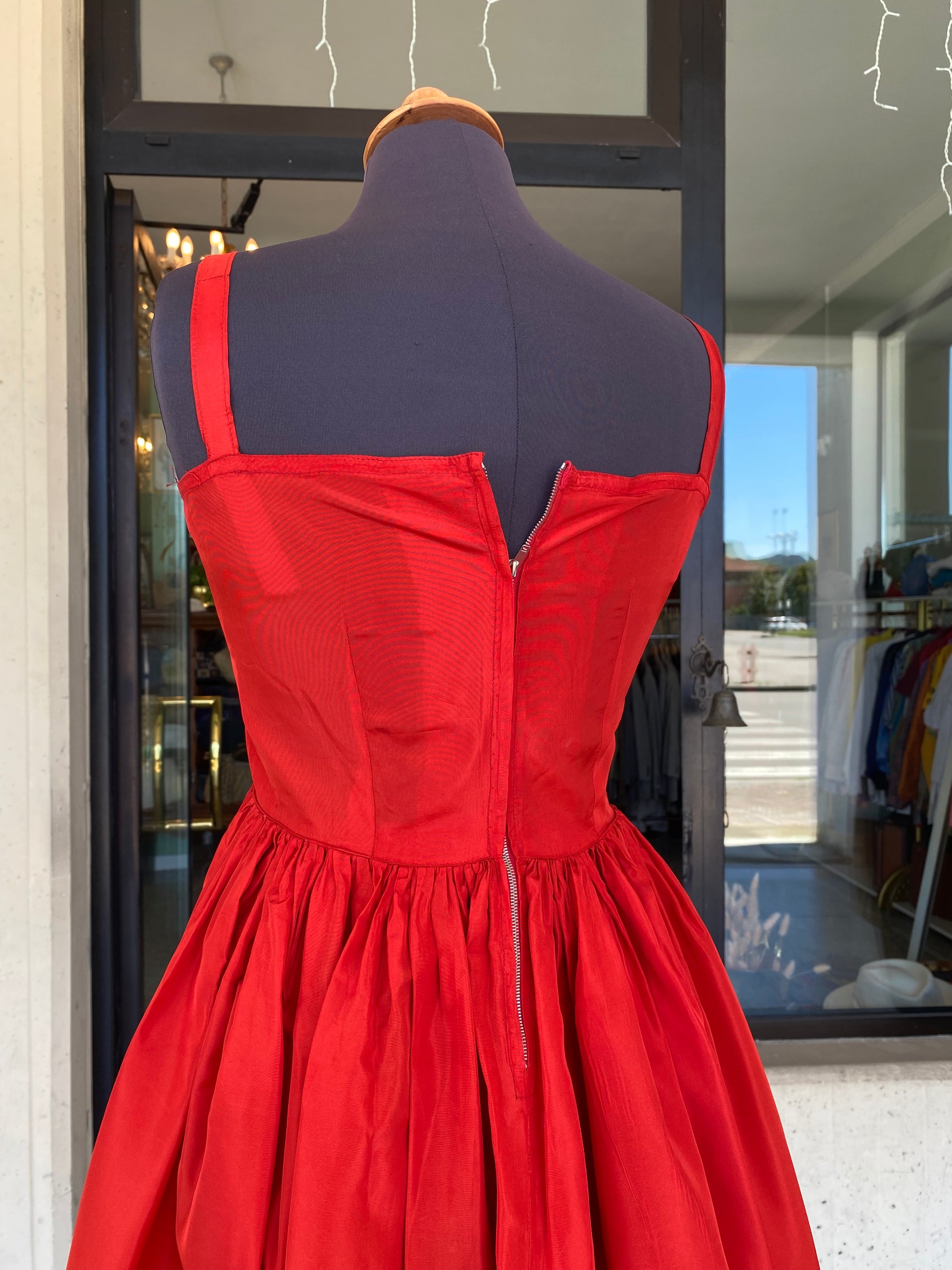 Abito anni ‘50 rosso in taffetà - TG. 38/40 con seno petite